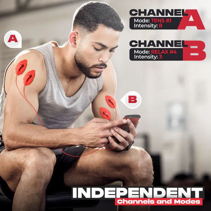 ✅ Dual-Channel Power: Control two independent channels with up to 4 electrode pads at once, allowing you to treat multiple areas simultaneously.